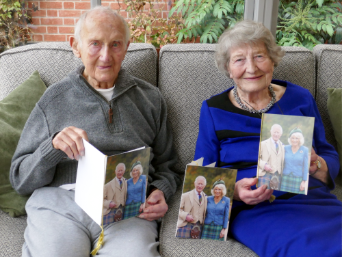 Ron was taken on the day of her 100th birthday. They are holding the trio of cards received this year from the King and Queen - one for each of their 100th birthdays and a further card celebrating their 78th Wedding Anniversary in July.