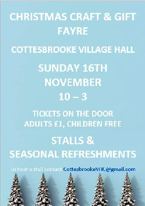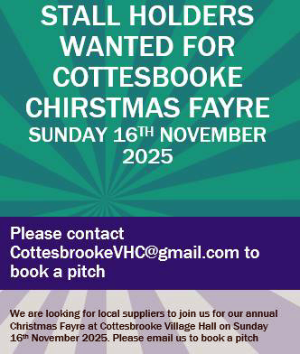 If you have something to add to the Cottesbrooke pages, you can get in touch with your village correspondent via cottesbrookevhc@gmail.com