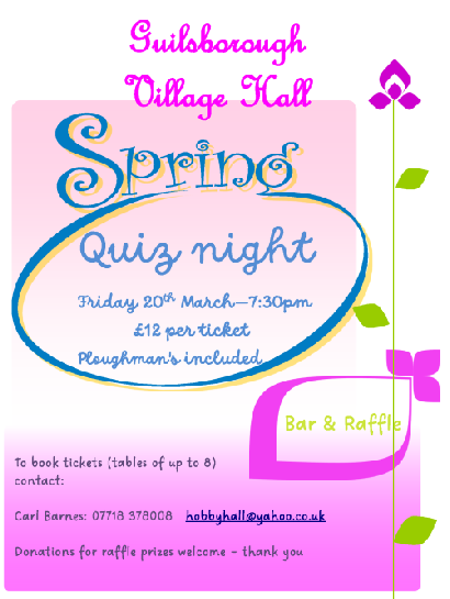 We would love to welcome some new blood either to the committee or in an ad hoc capacity. Please email us on info@guilsboroughvh.co.uk or chat to any of the current village hall team if you have an odd hour available to help.
