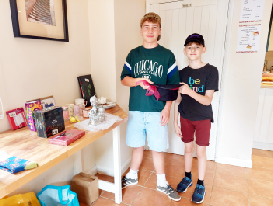 Our enthusiastic young tombola team of Ben Clarke and Jacob Oswin kept the punters entertained, as a battle broke out to carry off the sparkly, silver, leaping dolphin ornament, generously gifted by an anonymous donor.