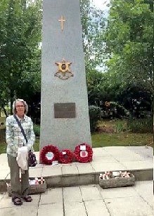 Lynn Furnell at the National Memorial Arboretum by the memorial of the Burma Star Soldiers. Her father John Pettit received this medal.
