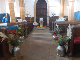 The sun shone for our Pimms and Puddings event in the afternoon of September 28th. The church was beautifully decorated for the service in the morning and enhanced by displays of paintings for sale by village artists. A wide variety of goods, fresh and frozen, was sent to the Daventry food bank, donations were made for church funds, and the raffle raised money for the Christmas shoeboxes. Thank you to all who supported us by contributing in any way.