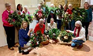 Mid December saw the annual gathering of the Hollowell Hens for an evening constructing Christmas wreaths in the Village Hall.